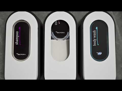 Customizable system with multiple combinations of 6 unique product types. Creates housekeeping efficiency by improving room turnover while eliminating opportunities for contamination. Sophisticated yet simple dispenser with recyclable refill cartridges replacing traditional single-use amenity and pump bottles.