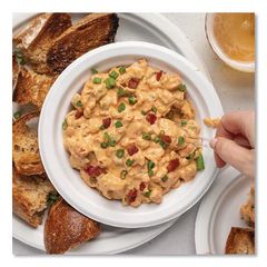 Get the impressive strength of molded fiber at an economical price. Extra-rigid dinnerware supports whatever you dish out, without requiring wasteful doubling. Decorative, highly practical rim edge helps prevent spillage.