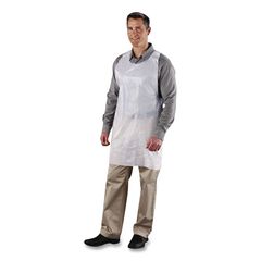 24 x 42. Apparel Type: Apron; Material(s): Polyethylene; Color(s): White; Color Family: White.